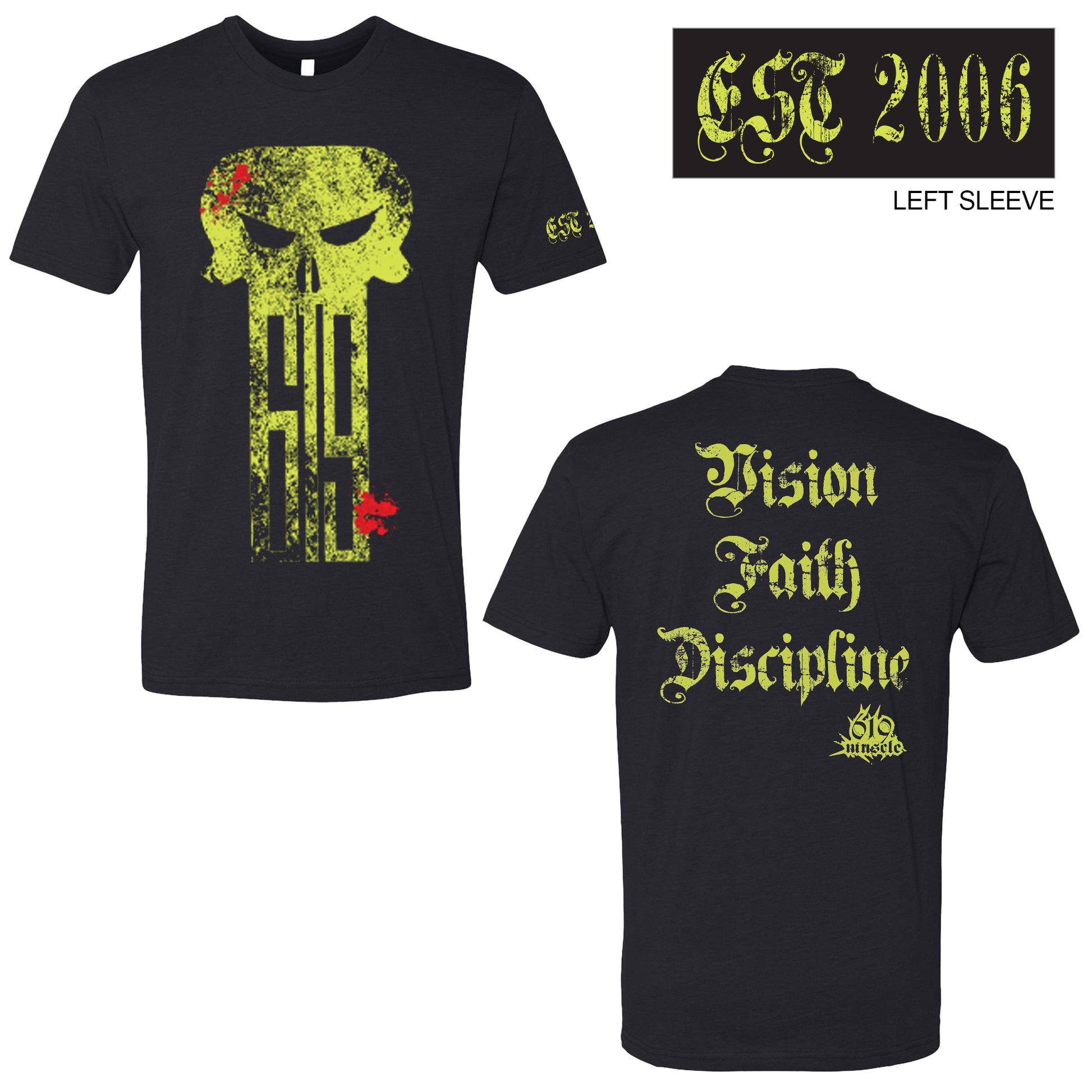 Make a statement with our premium tee featuring the bold 619 Punisher logo on the front and the powerful mantra "Vision, Faith, Discipline" on the back. Designed for those who live with purpose , this shirt is perfect for crushing goals in and out of the gym.